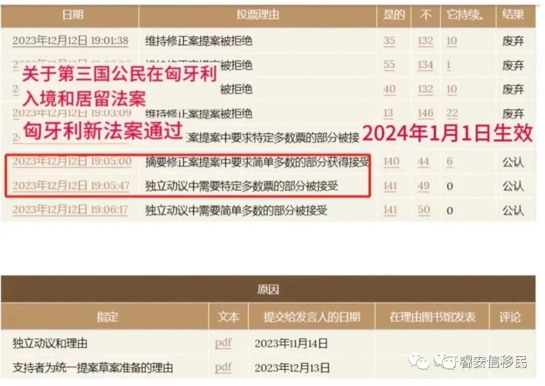 在12月13号匈牙利国民议会宣布的《关于第三国公民在匈牙利入境或居留法案》也将在2024年1月1日生效,具体移民政策和门槛必然也有变化。